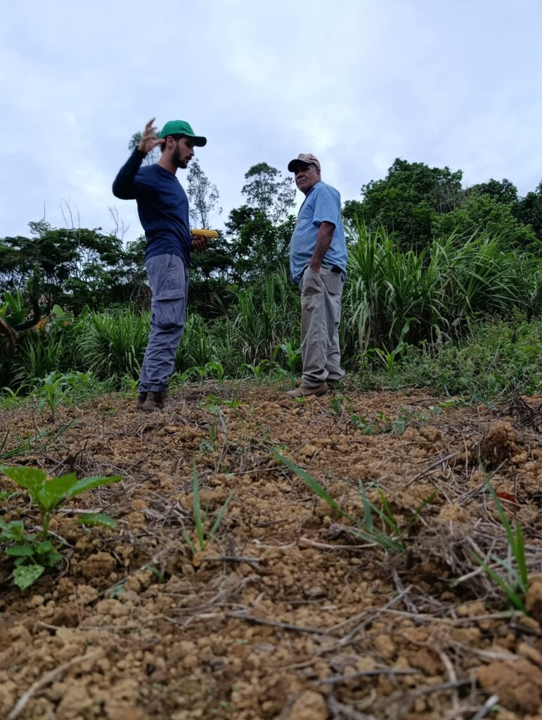 As visitas técnicas estão sendo realizadas pelo engenheiro agrônomo e Agente de Transição Agroecológica José Wilson Ferreira Bispo, em conjunto com a Agente Popular de Transição Agroecológica Mariana Aparecida Martins. Durante os encontros nas propriedades, além do cadastro das famílias, são promovidas orientações técnicas produtivas, respeitando as especificidades de cada território, os saberes locais e a diversidade dos sistemas agrícolas.