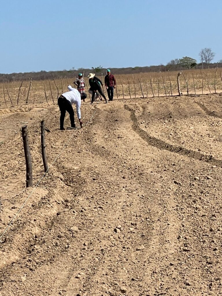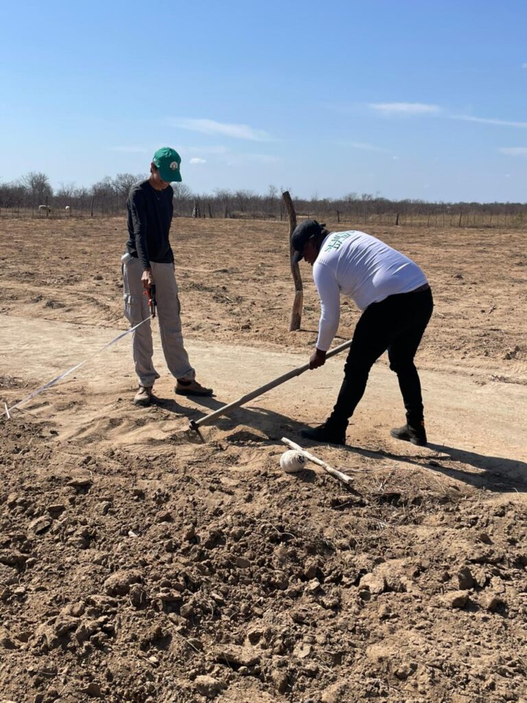 No segundo dia de atividades, a equipe reuniu-se com participantes no Assentamento Maria Luzia, na casa da agricultora Antônia Nelza dos Santos, onde foi realizado o mutirão de implantação do novo corredor agroecológico. A área já havia sido preparada previamente, o que permitiu que a prática avançasse com foco na semeadura direta e no alinhamento das espécies nativas e alimentares definidas no planejamento.