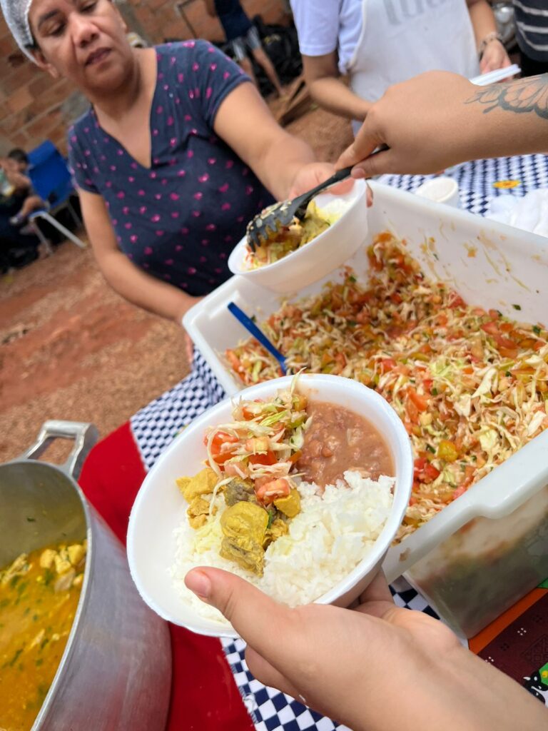 Além disso, no sábado, houve uma nova ação da Cozinha Solidária Popular do Cerrado em parceria com a Associação de Educação, Cultura e Cidadania (ADEC), que também desenvolve atividades voltadas à comunidade em situação de vulnerabilidade, principalmente em períodos de maior circulação de famílias, e que também está ligada a atividades de cunho religioso.