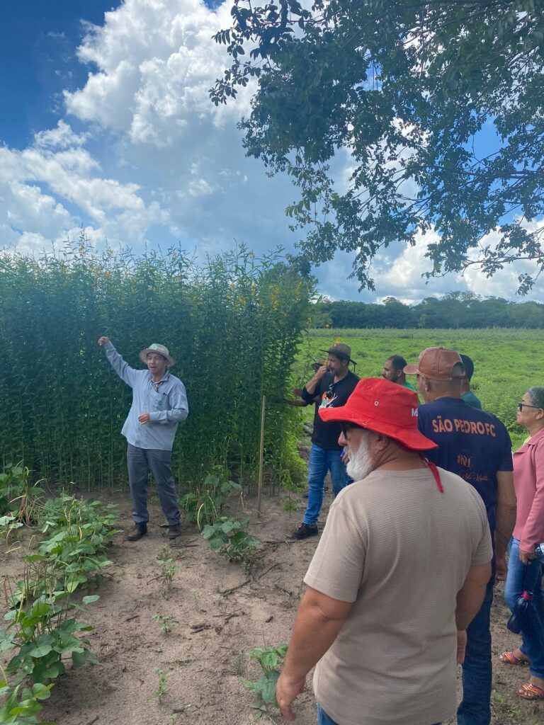 Com o apoio da equipe da Embrapa Arroz e Feijão, durante o encontro,  os participantes visitaram os Sistemas Agroflorestais (SAFs) implantados na propriedade do agricultor Jucelino José Moreira, no Povoado São Pedro, onde puderam acompanhar de perto os resultados iniciais da implantação do sistema realizada no ano passado.