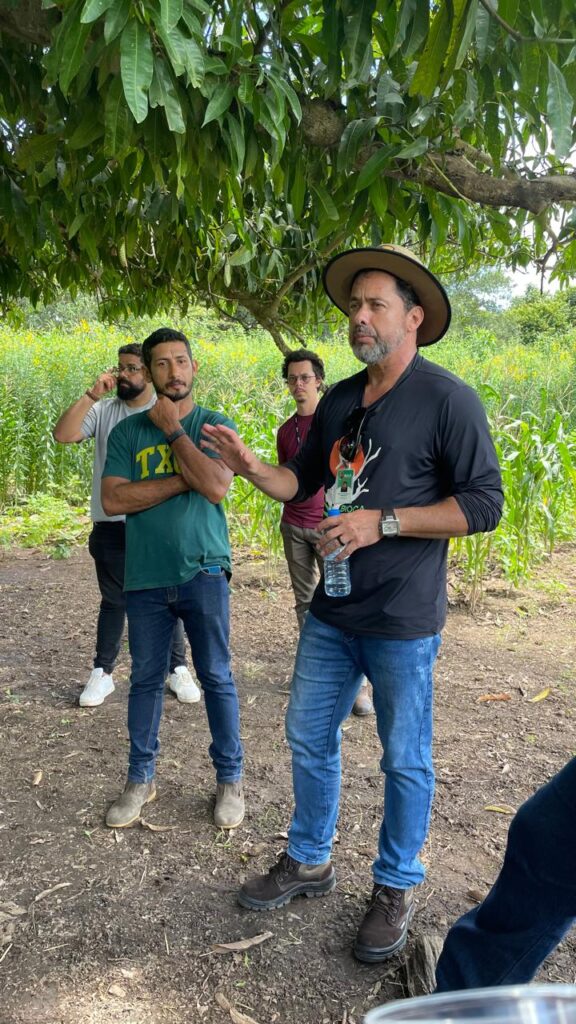 Além da visita técnica aos SAFs, a programação contou com uma oficina promovida pela equipe da Saneago, abordando a relação entre biodiversidade, produção de alimentos e conservação da água no Cerrado.