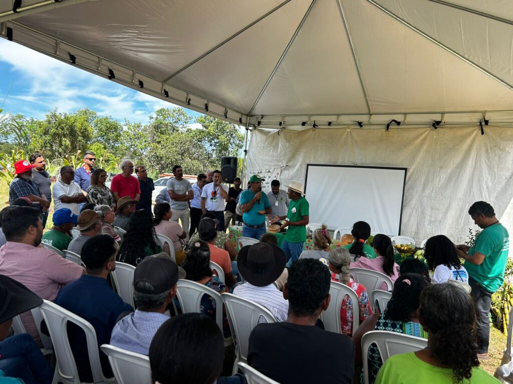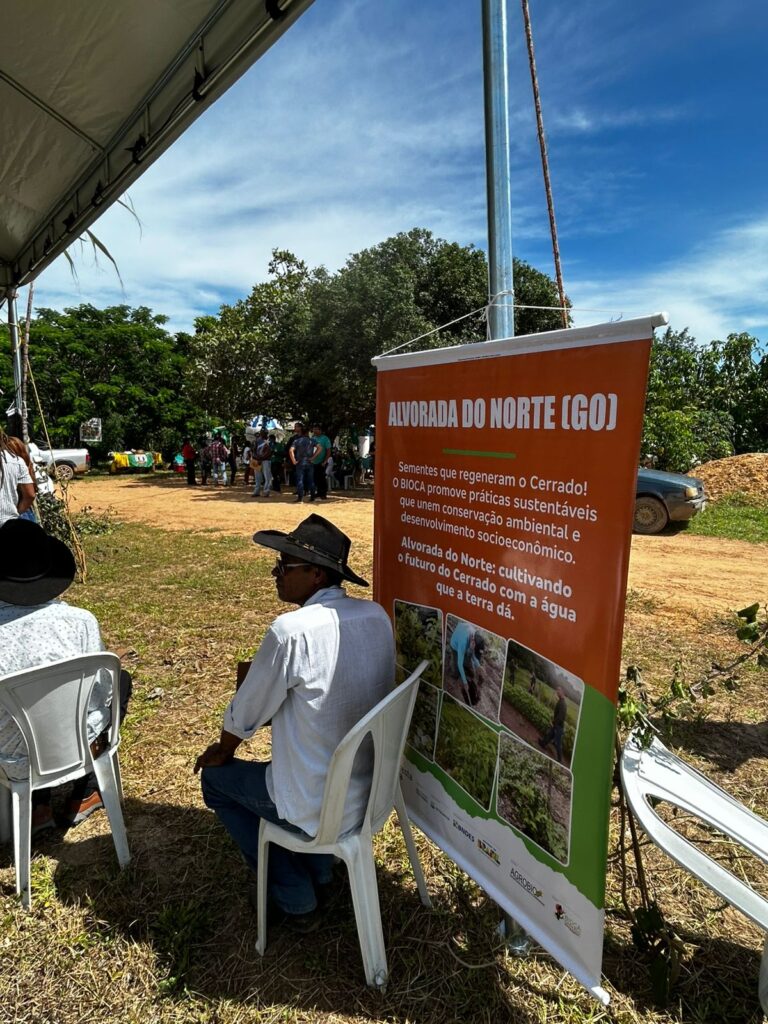 Mais de 200 pessoas participaram, nesta terça-feira (10), do Dia de Campo promovido pelo Projeto Biodiversidade e Cadeias Produtivas: Restauração de Áreas Degradadas e Sustentabilidade Socioeconômica no Cerrado Goiano (BIOCA). O encontro foi realizado na propriedade do senhor Cícero Barbosa de Andrade, na Comunidade Quilombola Castelo, Retiro e Três Rios, no município de Alvorada do Norte (GO), reunindo agricultores familiares, pesquisadores, representantes de instituições públicas, movimentos sociais e autoridades locais.